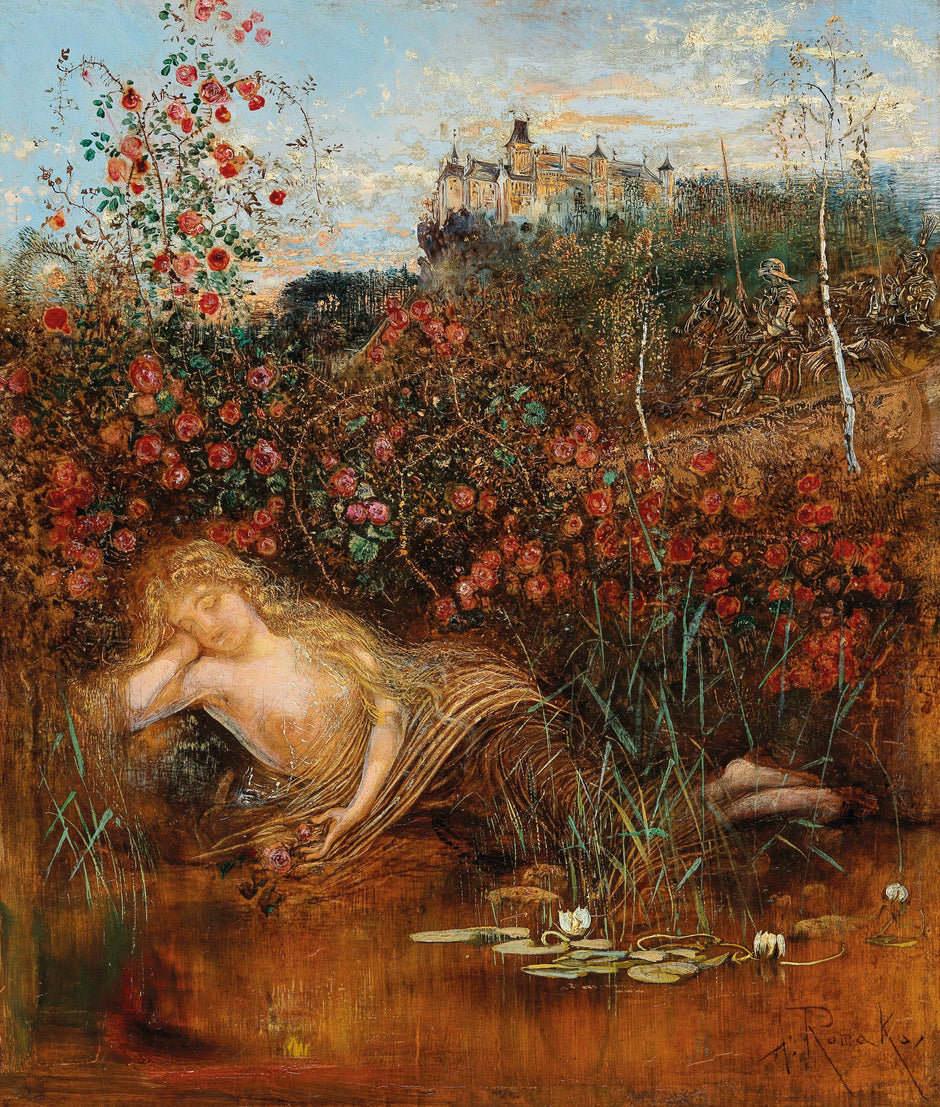 Romako expertly balances the figure of the nymph with the surrounding flora. The composition guides the viewer's eye through the painting, creating a sense of movement and tranquility. The nymph's pose, relaxed yet poised, complements the organic shapes of the rose hedge, emphasizing the connection between humanity and nature.
