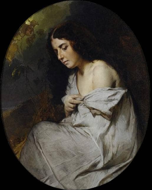 Induno masterfully employs chiaroscuro, the technique of using strong contrasts between light and dark, to enhance the three-dimensionality of the model. The interplay of light and shadow adds depth to her form, creating a lifelike representation. This technique not only highlights the model's features but also evokes a sense of drama and emotion, making the painting a captivating visual experience.