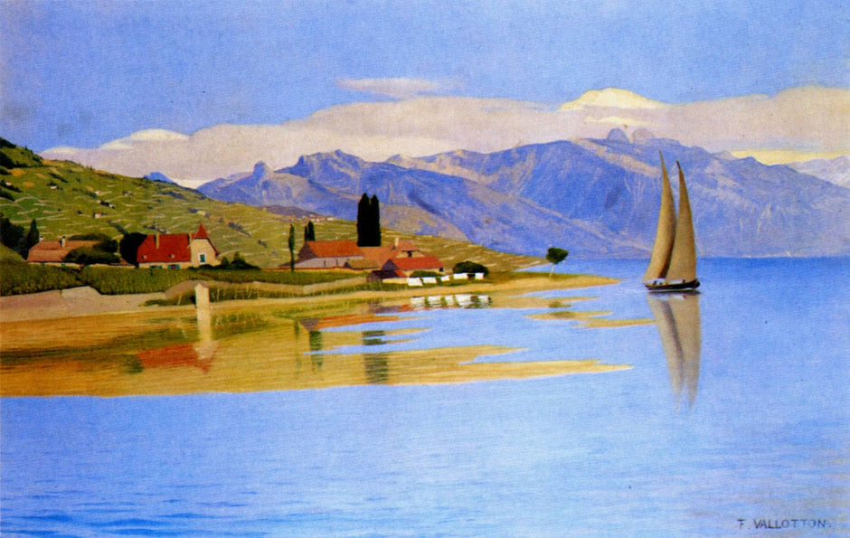 "The Port of Pully" evokes a deep sense of tranquility. The calm waters of Lake Geneva reflect the peacefulness of the scene, inviting viewers to pause and reflect. Vallotton's ability to convey emotion through landscape is a hallmark of his artistry.